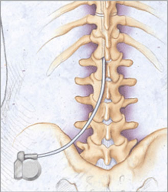 A bomba de infusão de morfina, consiste basicamente em um dispositivo eletronicamente controlado que infunde morfina diretamente sobre a medula espinhal. Isto garante potente analgesia, as custas de mínimas doses de medicação, e praticamente ausência de efeitos adversos. Esse dispositivo possui um reservatório com capacidade que varia entre 20 a 40ml, devendo ser reabastecido aproximadamente a cada 2 meses pelo médico neurocirurgião. Ambas as técnicas apresentam indicações bastante selecionadas e precisas, e tem revolucionado a vida de milhares de pacientes que sofrem de dores crônicas intratáveis.